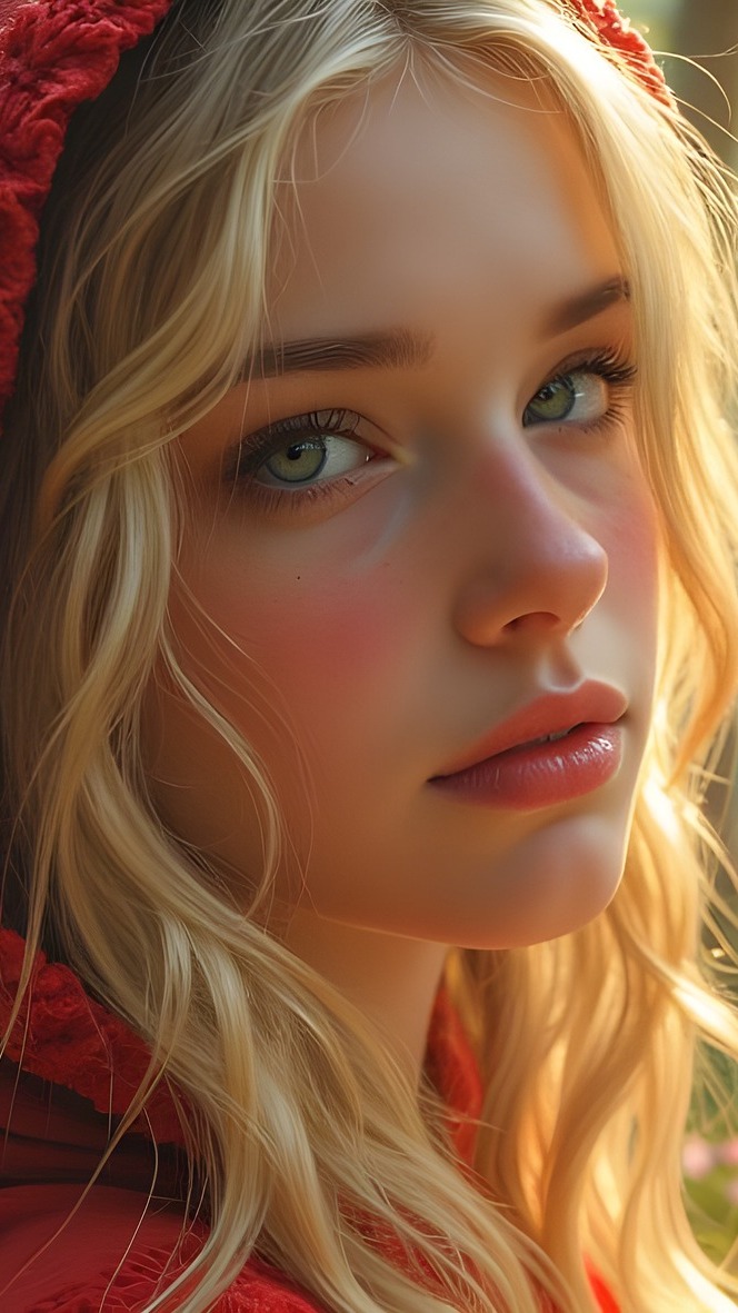 Edytor tapety: Spojrzenie blondynki w czerwonym kapturze