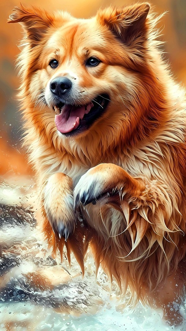 Edytor tapety: Pies biegnący po wodzie