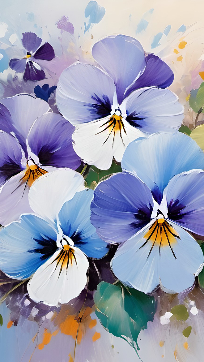 Edytor tapety: Grafika z niebieskimi i fioletowymi bratkami