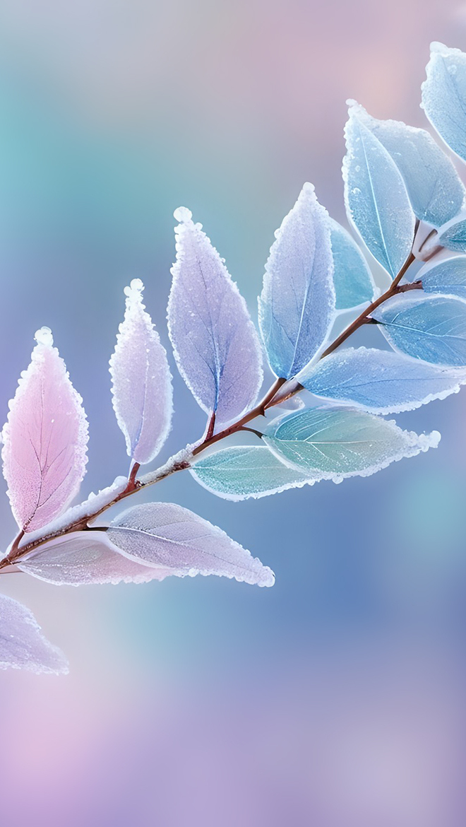 Edytor tapety: Oszronione liście na gałązce w grafice