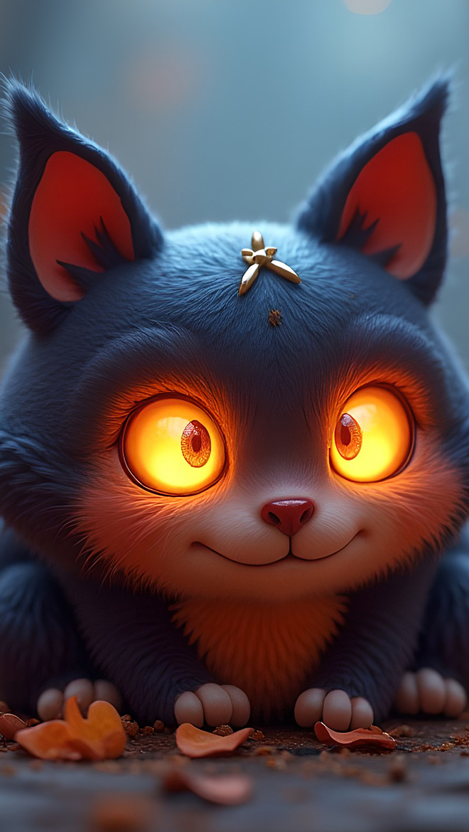 Edytor tapety: Stworek ze świecącymi oczami w grafice