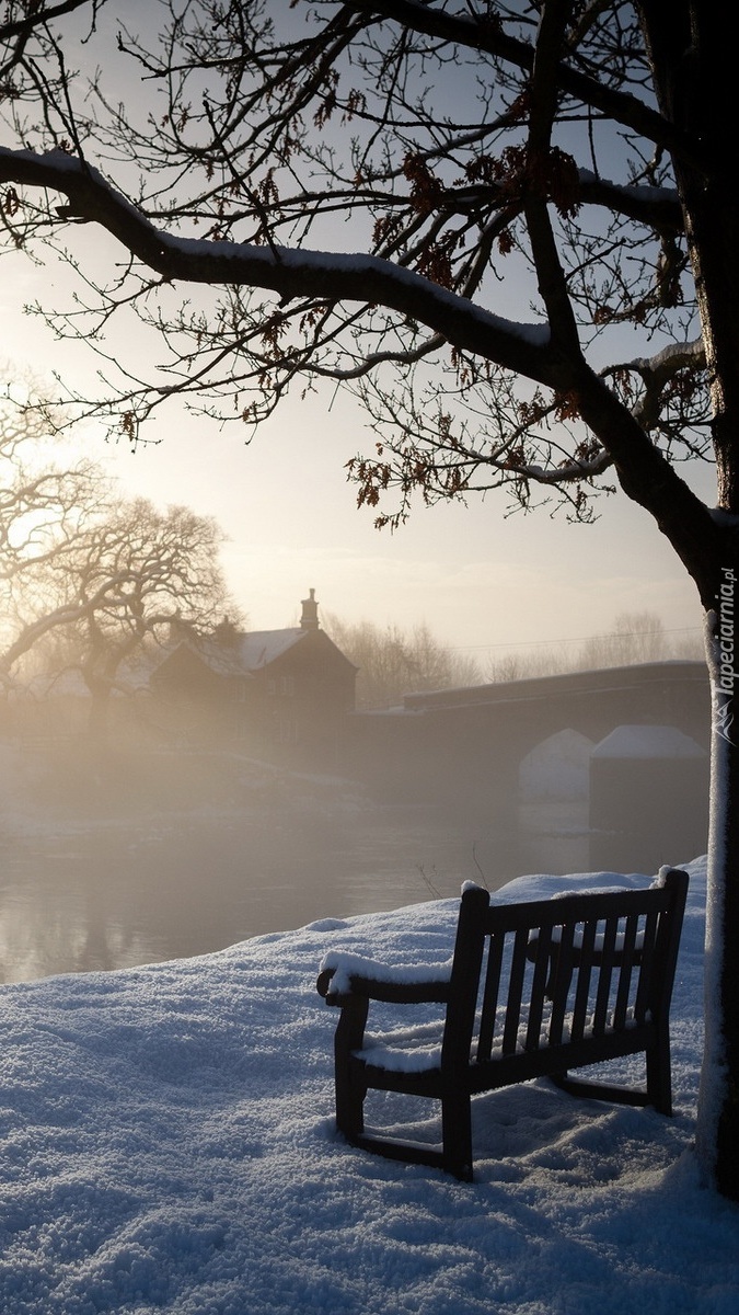 Edytor tapety: Ośnieżona ławka pod drzewem
