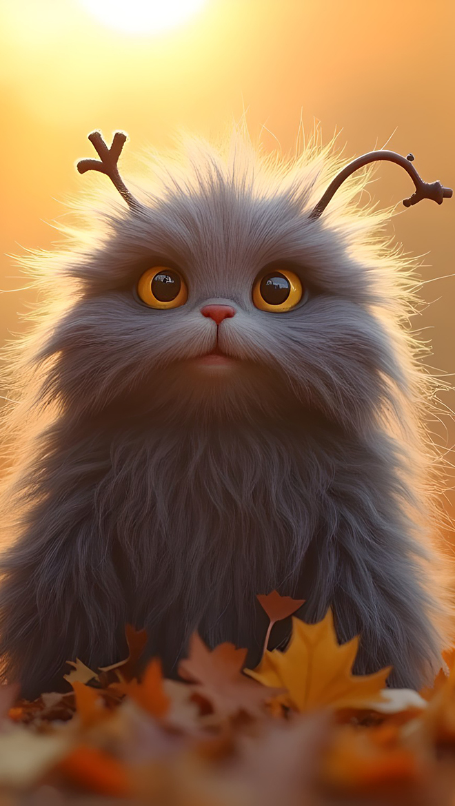 Edytor tapety: Włochaty stworek na jesiennych liściach