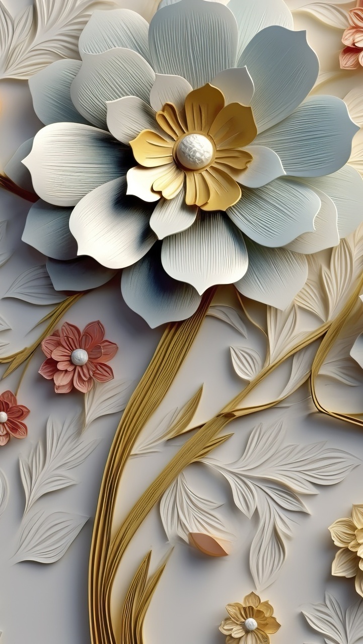 Edytor tapety: Papierowy kwiat na złotej gałązce
