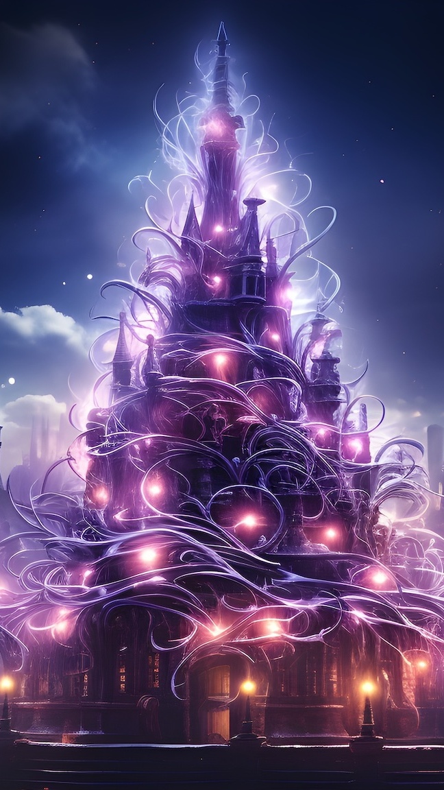 Edytor tapety: Oświetlona nocą choinka w grafice