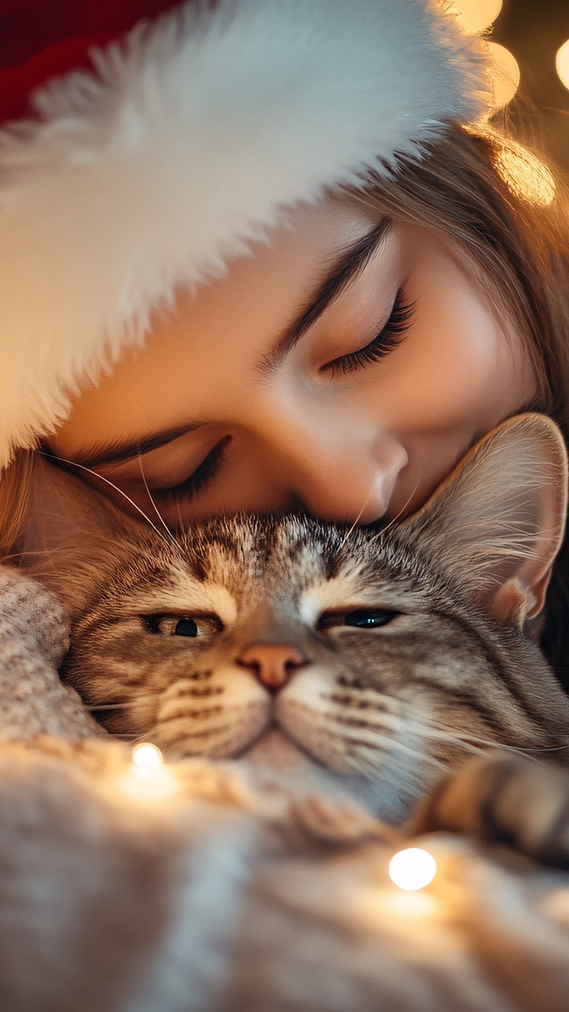 Edytor tapety: Dziewczyna przytulona do głowy kota