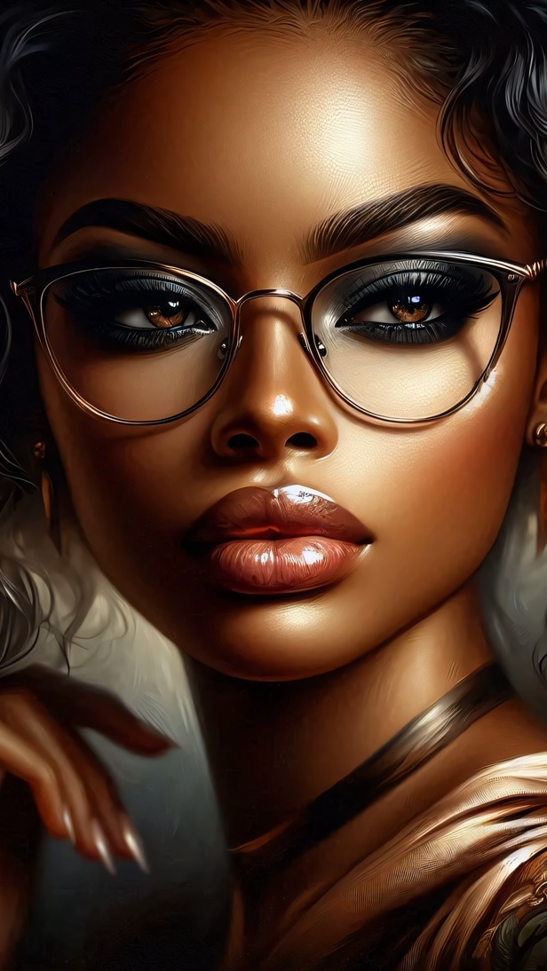 Edytor tapety: Twarz ciemnoskórej kobiety w okularach