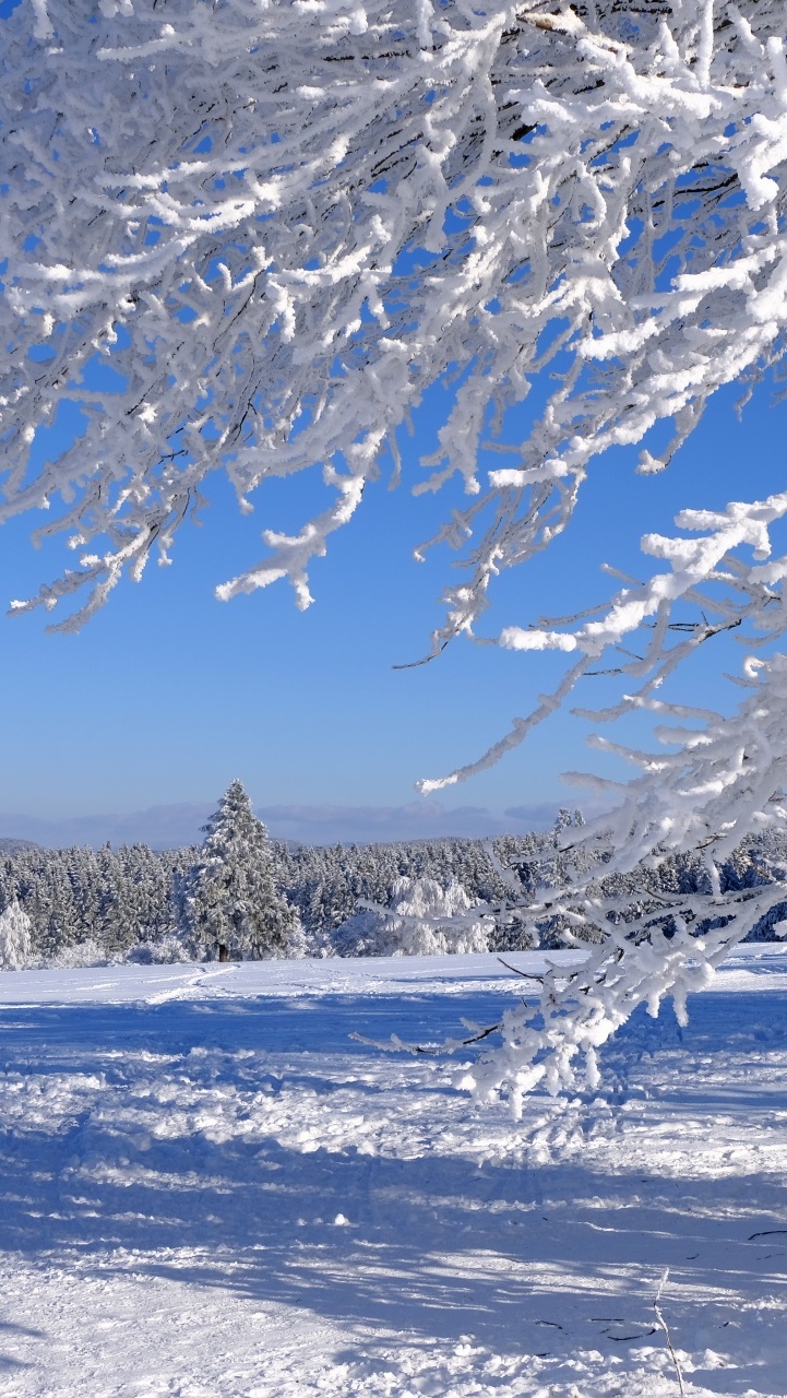 Edytor tapety: Rozświetlone słońcem oszronione gałęzie drzewa