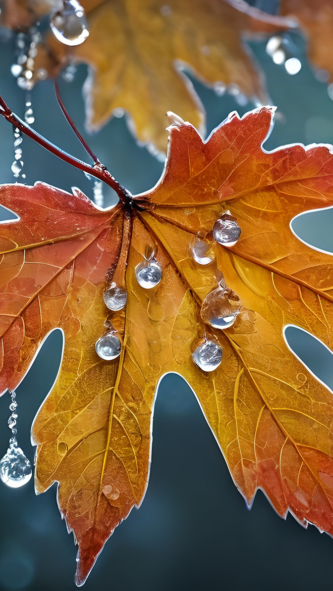 Edytor tapety: Krople na jesiennym liściu