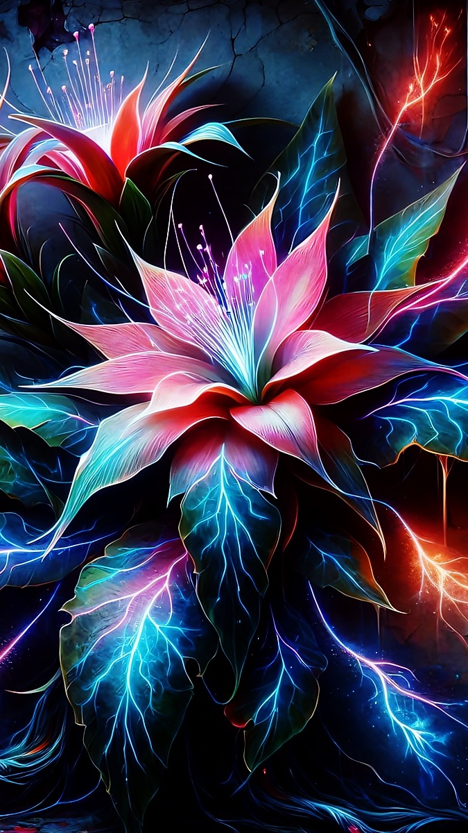 Edytor tapety: Rozświetlone kwiaty i liście w grafice