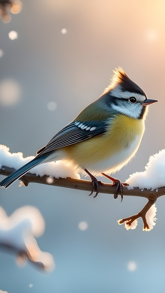 Edytor tapety: Grafika z sikorką na ośnieżonej gałązce