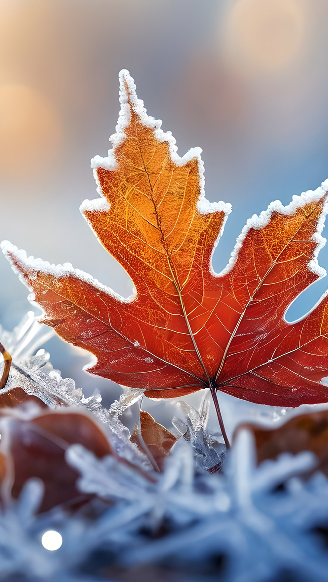 Edytor tapety: Oszroniony jesienny liść