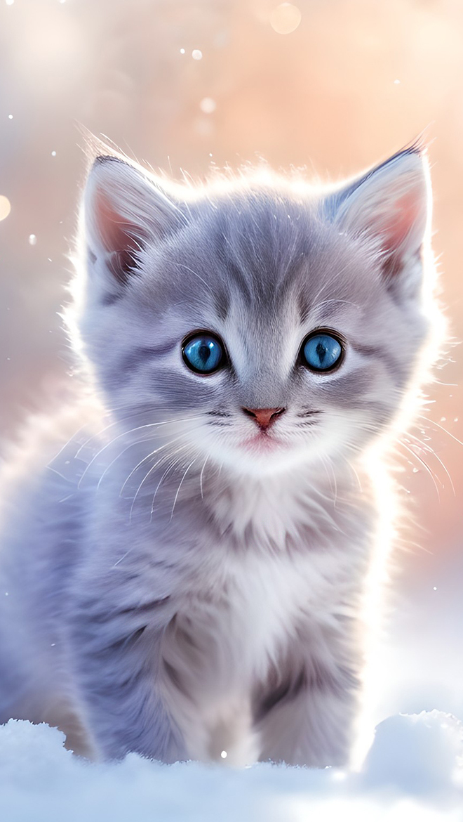 Edytor tapety: Mały niebieskooki kotek na śniegu