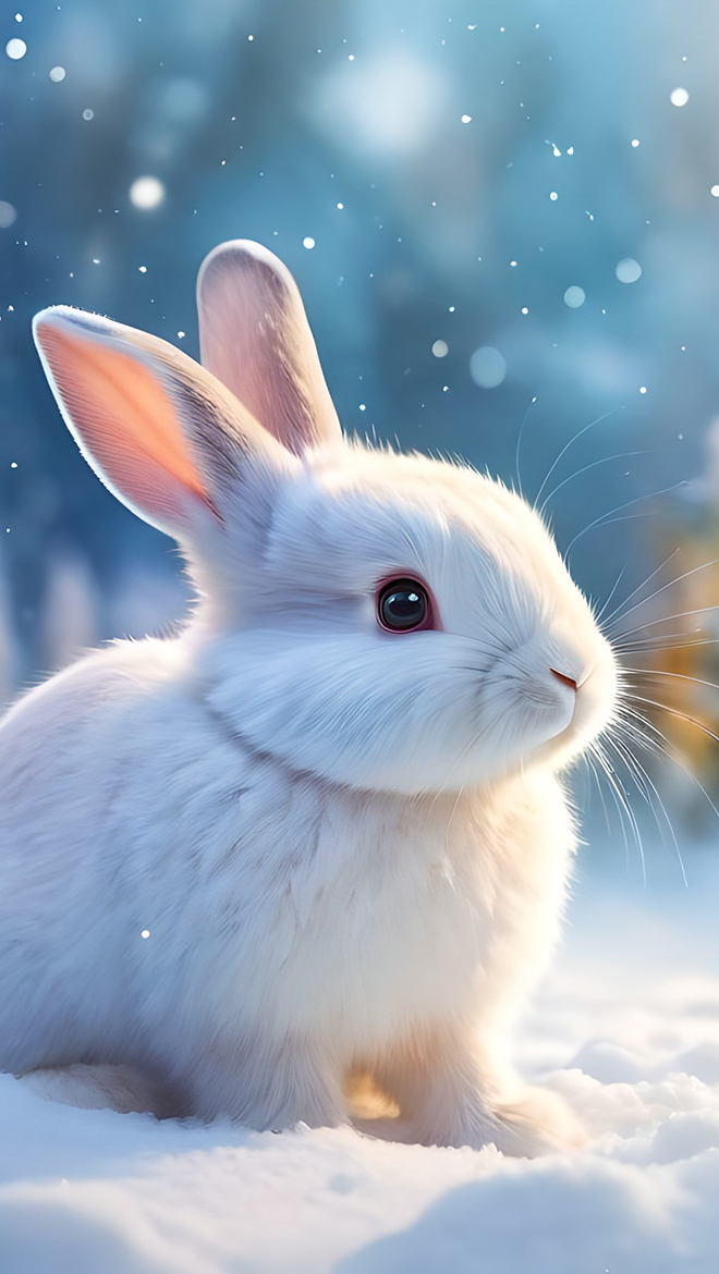 Edytor tapety: Grafika z białym królikiem na śniegu