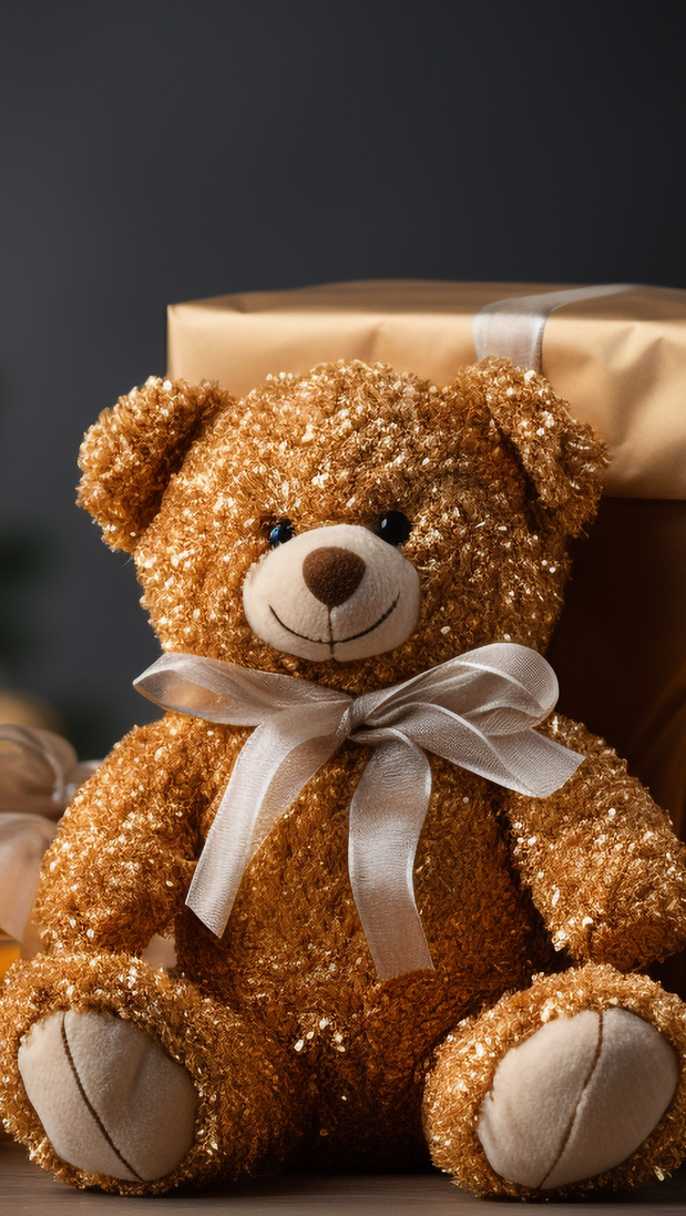 Edytor tapety: Pluszowy miś siedzący obok prezentu
