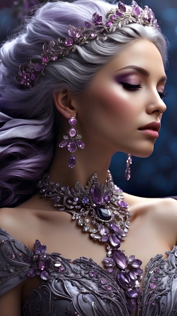 Edytor tapety: Kobieta z fioletową biżuterią