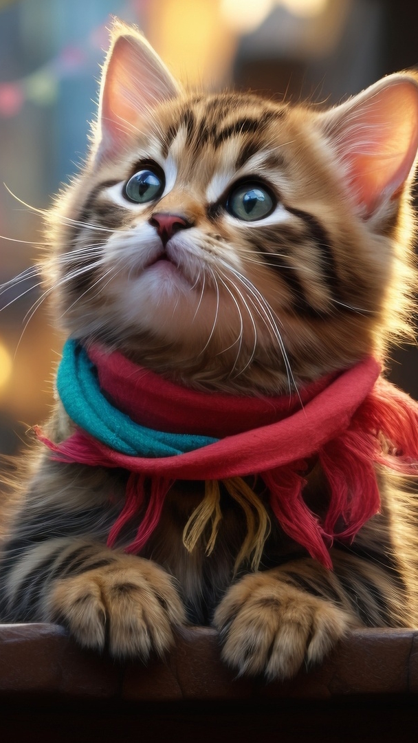Edytor tapety: Kotek w szaliku patrzący w górę