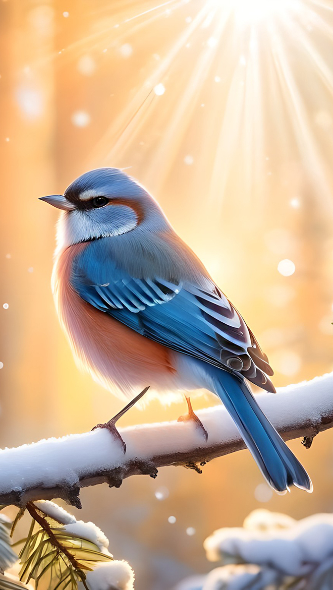 Edytor tapety: Kolorowy ptak na ośnieżonej gałązce