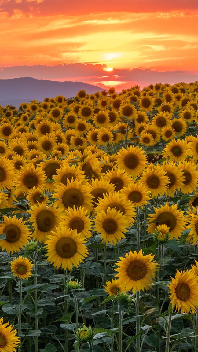 Edytor tapety: Pole słoneczników o zachodzie słońca