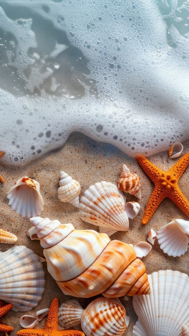 Edytor tapety: Rozgwiazdy i muszle na morskiej plaży