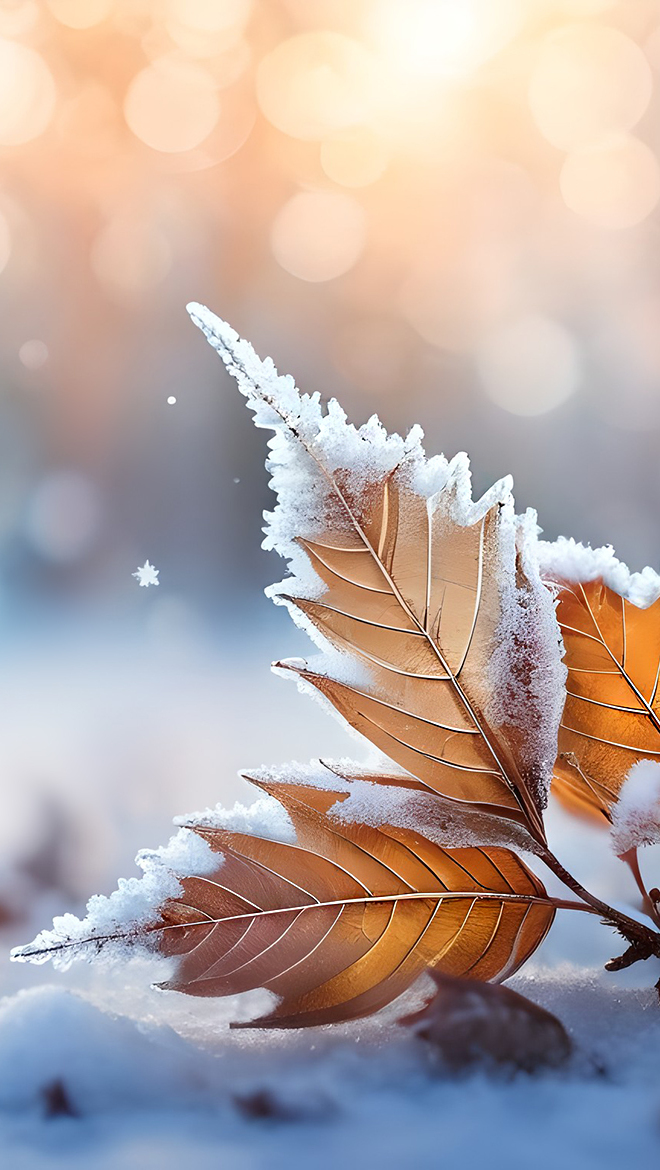 Edytor tapety: Oszronione liście na śniegu