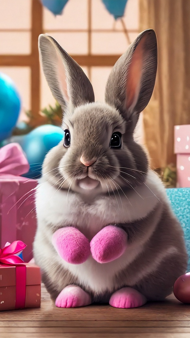 Edytor tapety: Królik obok prezentów