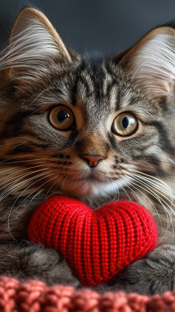Edytor tapety: Kot z czerwonym serduszkiem między łapkami
