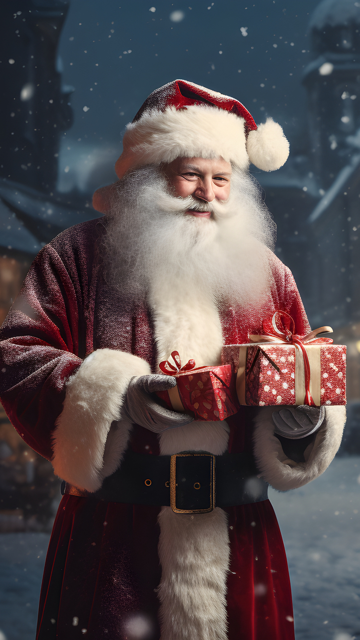 Edytor tapety: Mikołaj z prezentami w dłoniach