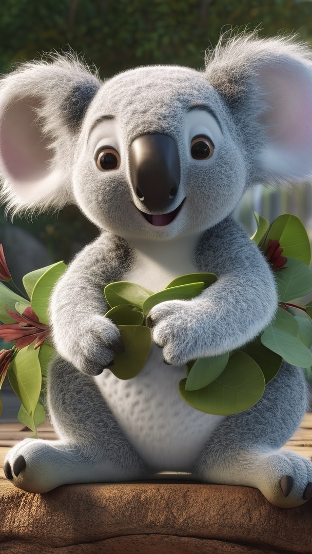 Edytor tapety: Koala z liśćmi w łapkach