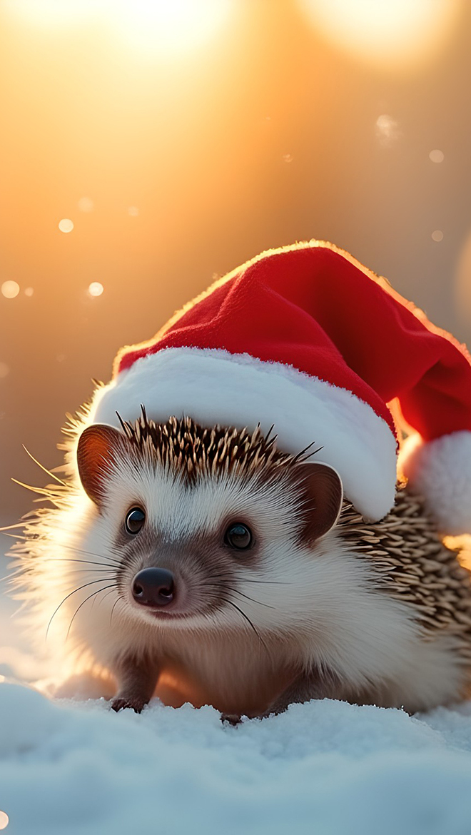 Edytor tapety: Jeż w czapce Mikołaja na śniegu