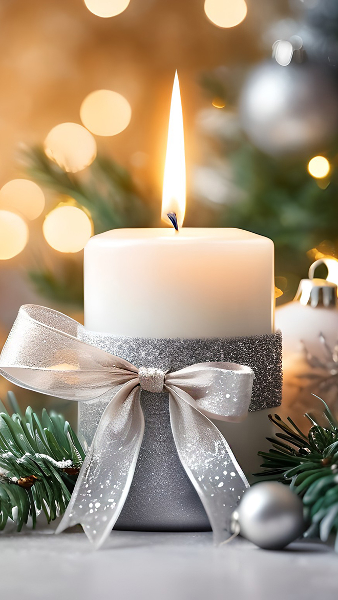 Edytor tapety: Zapalona świeca z kokardą
