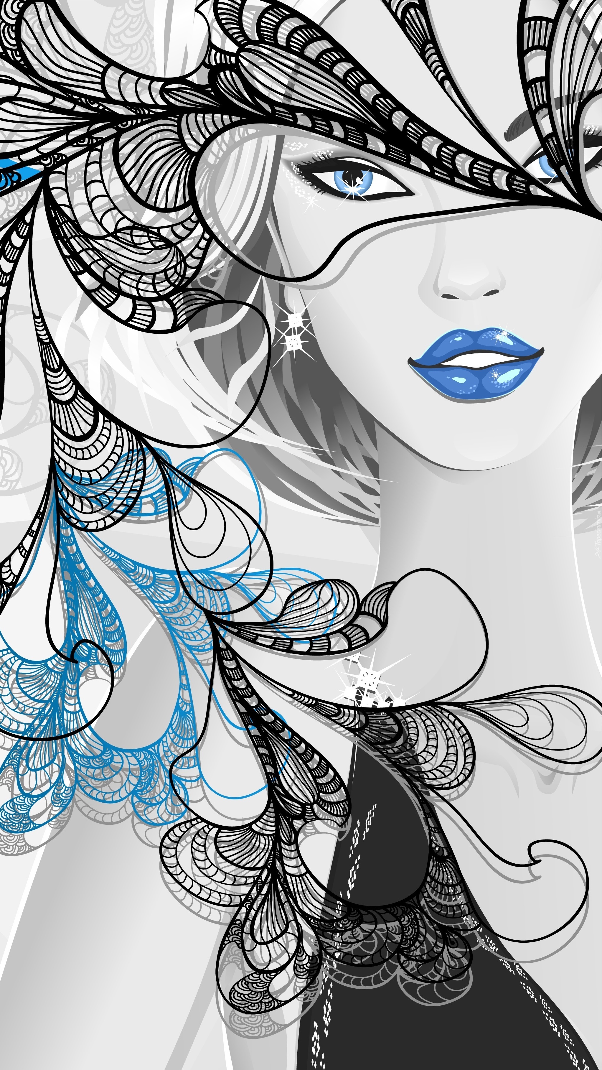 Edytor tapety: Kobieta z niebieskimi ustami w 2D