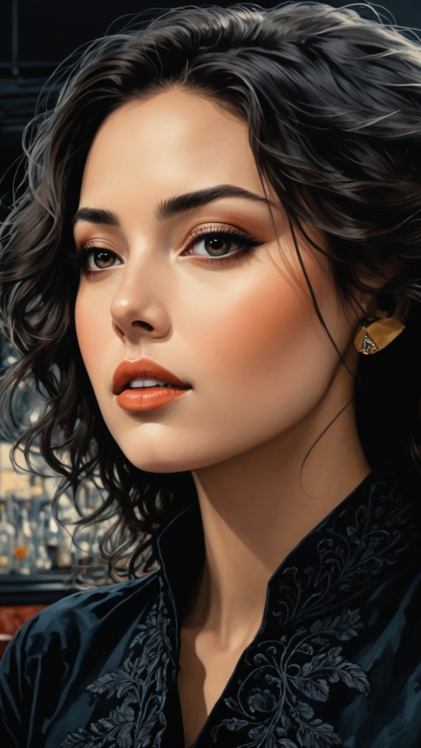 Edytor tapety: Twarz długowłosej kobiety z kręconymi włosami