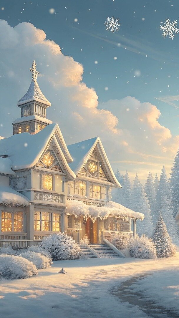Edytor tapety: Grafika z ośnieżonym domem