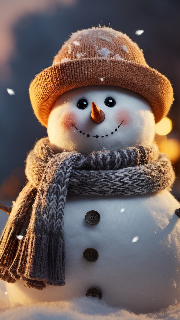 Edytor tapety: Bałwan w brązowym kapeluszu i szaliku