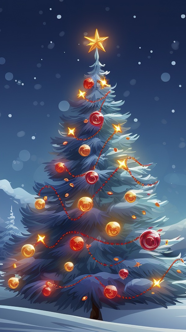 Edytor tapety: Udekorowana i rozświetlona choinka w grafice