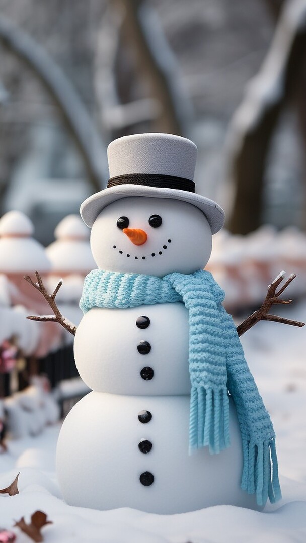 Edytor tapety: Bałwan w kapeluszu i niebieskim szaliku