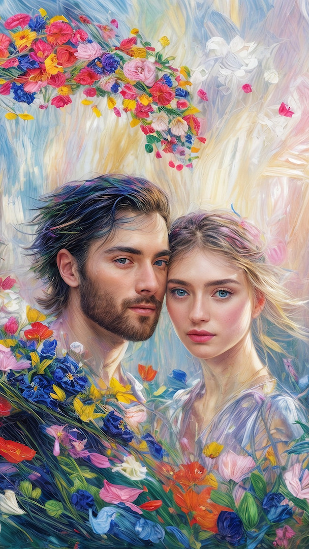 Edytor tapety: Kobieta i mężczyzna wśród kwiatów