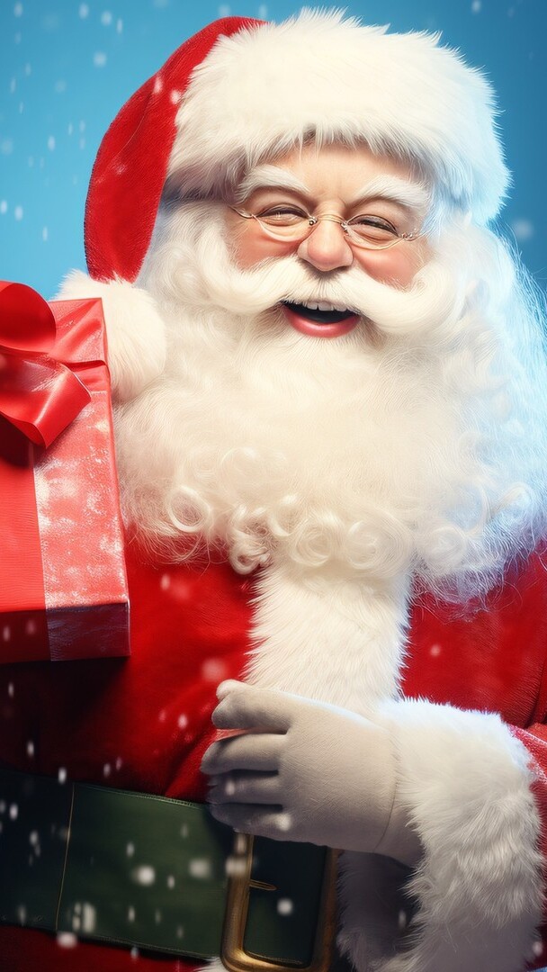 Edytor tapety: Uśmiechnięty Mikołaj z prezentem