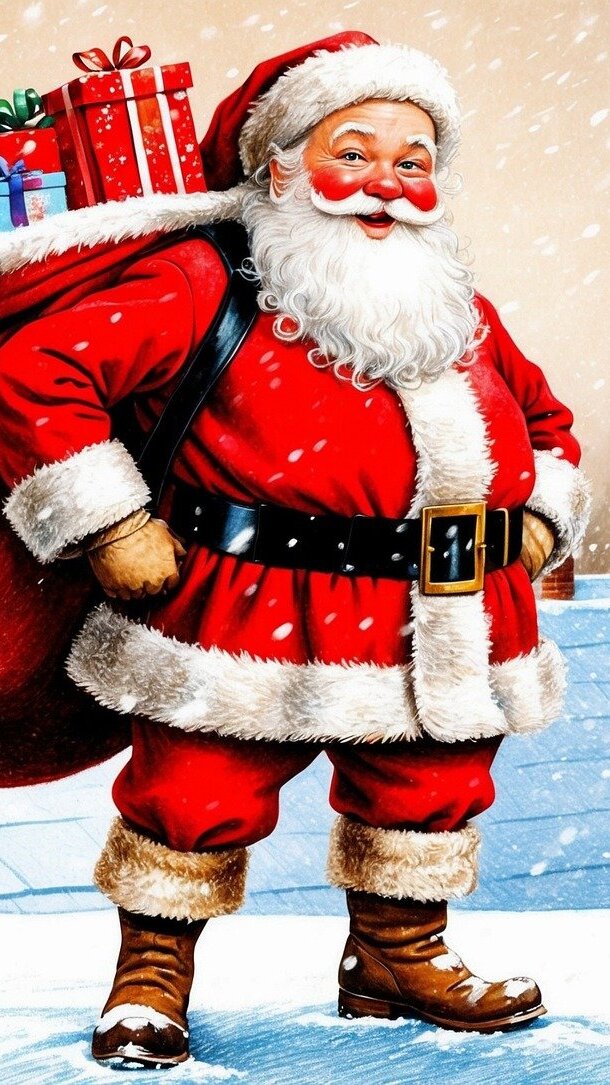 Edytor tapety: Mikołaj z workiem prezentów na plecach