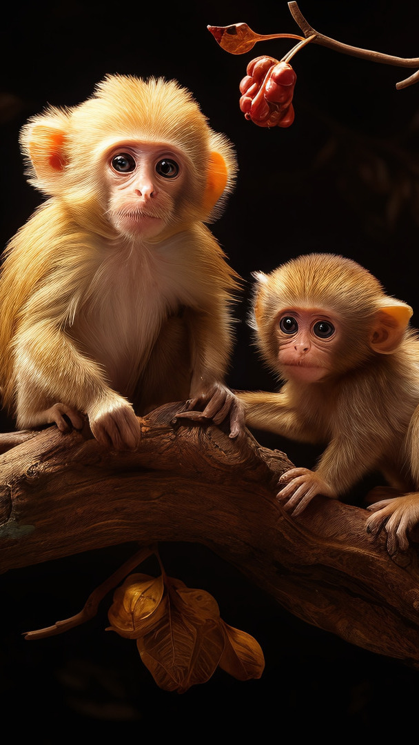 Edytor tapety: Dwie małe małpki na gałęzi drzewa