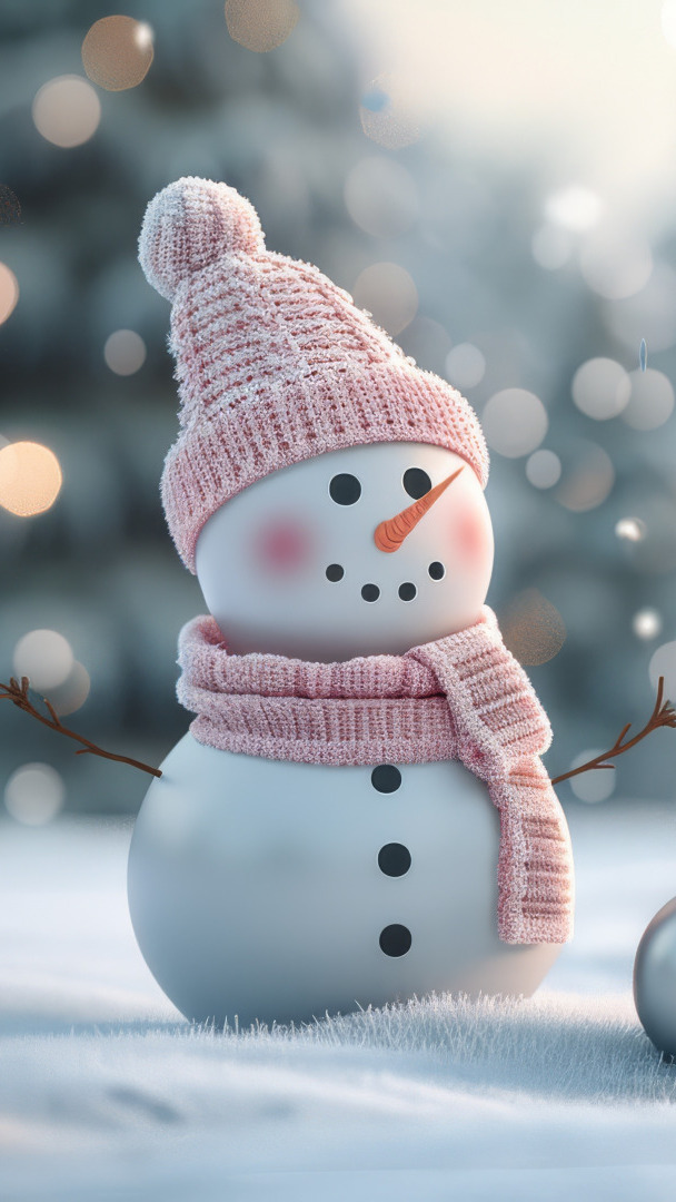 Edytor tapety: Bałwanek w różowej czapce i szaliku