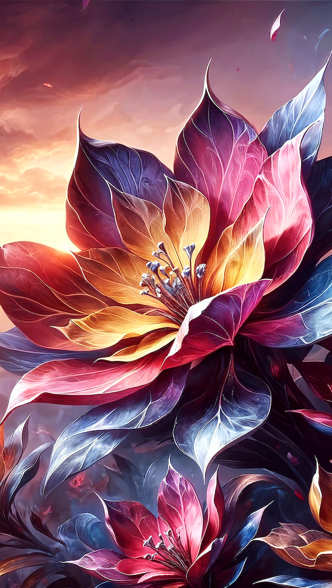 Edytor tapety: Rozświetlone i rozkwitnięte kolorowe kwiaty
