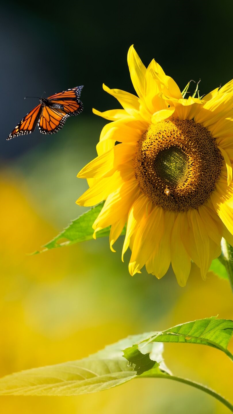 Edytor tapety: Motyl obok kwitnącego słonecznika