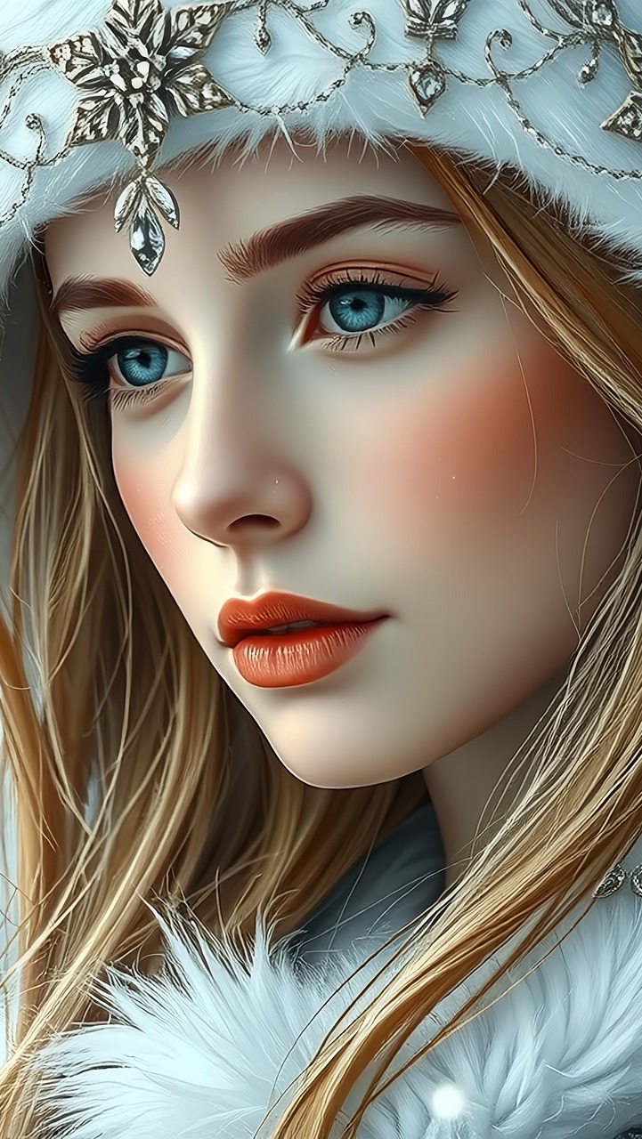 Edytor tapety: Kobieta z biżuterią na futrzanej czapce