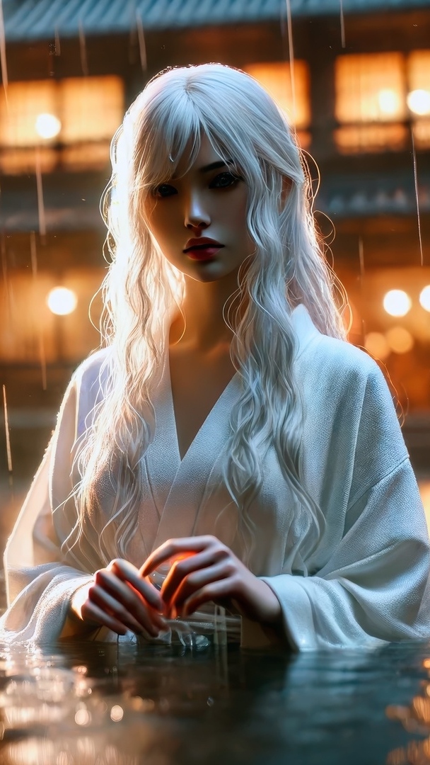 Edytor tapety: Długowłosa blondynka stojąca w wodzie