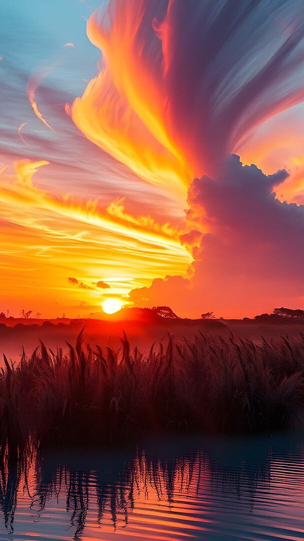 Edytor tapety: Szuwary na jeziorze o zachodzie słońca
