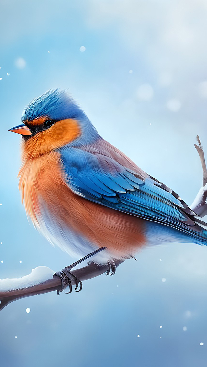 Edytor tapety: Kolorowy ptak na ośnieżonej gałązce