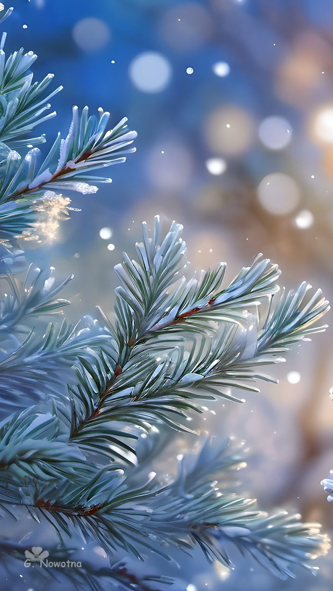 Edytor tapety: Ośnieżone gałązki świerkowe