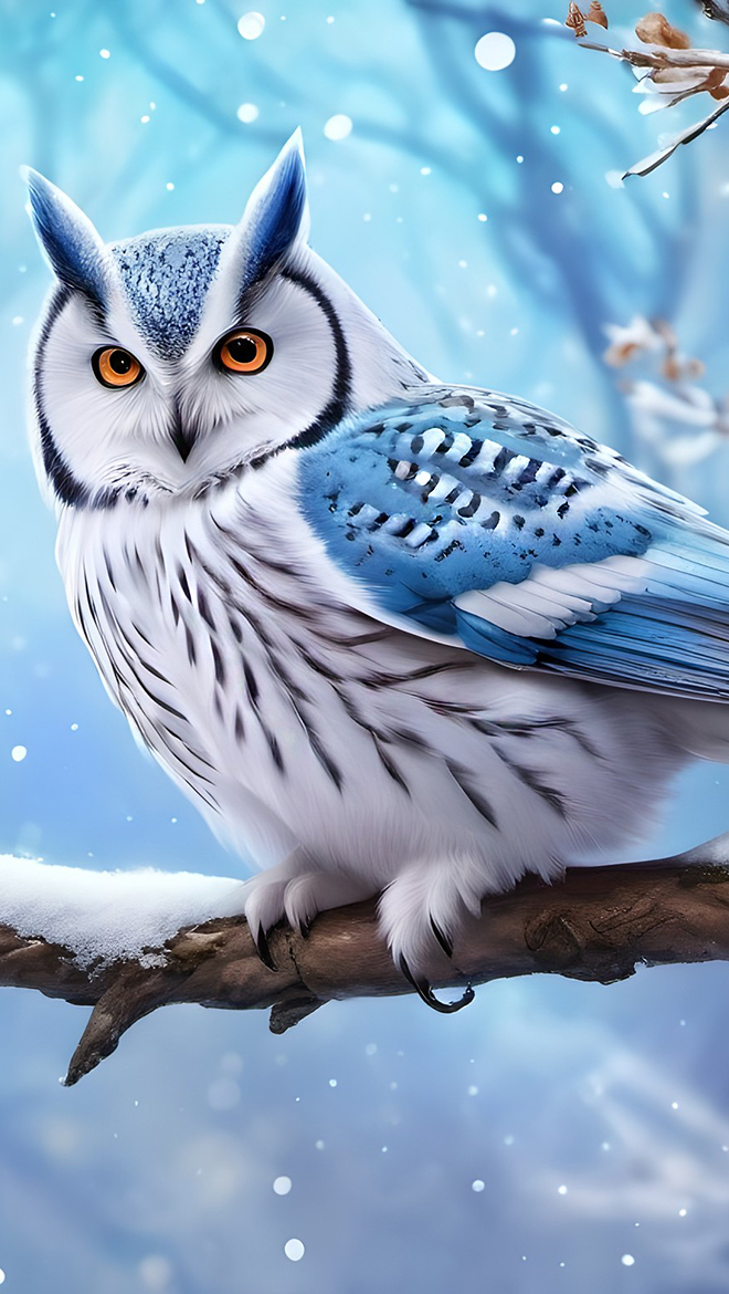 Edytor tapety: Sowa na ośnieżonej gałęzi